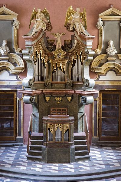 The chapel, originally consecrated to the Annunciation of Our Lady, was later given its present name because of the unusually copious use of mirrors in its decoration, not only on the walls but also on the vault. It was built by the Latin Major Marian Sodality at their own expense in the years 1722-1726. The architect of the chapel has not been convincingly determined yet, František Maxmilián Kaňka and also Kilián Ignác Dientzenhofer might be considered. More about the history >>