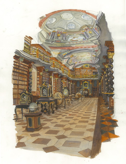Illustrator Tom Mairs included a picture of the Klementinum baroque library in his book called Prague Sketchbook.