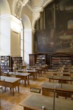 The General Reading Room, a summer refectory of the former Jesuit Collegium Clementinum, is situated on the ground floor. You will find it next to the entrance, through a baroque portal and anteroom, through the door on the right side. |