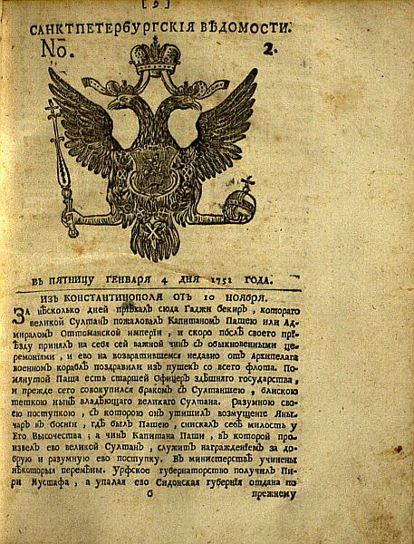 Among newspapers, considerable historical value is attached especially to the significantly fragmented Sanktpeterburgskie vedomosti (1751–1842) and Moskovskie vedomosti (1812–1829) as well as the relatively complete Cracow daily Czas (1848–1939).